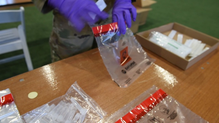 “The Guard is helping us out with trying to get as many kits out as we can,” said Alexis Tripodo, a state employee of the Division of Homeland Security and Emergency Services. ”They are helping out tremendously with the speed of the completed kits and making sure it’s accurate, making sure every bag is packed correctly.”