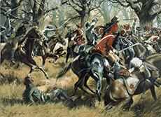 In upland South Carolina, at a place where local farmers penned their cows, an American force of 300 Continentals and 700 militia from North and South Carolina, Virginia, and Georgia, won a brilliant victory against the British. On January 16, Brigadier General Daniel Morgan, pursued by 1,100 British under Lt. Col. Banastre Tarleton, carefully picked his ground for a defensive battle. That night, Morgan personally went among the Continentals and militiamen to explain his plan of battle. Morgan wanted two good volleys from the militia, who would then be free to ride away. The next day, the battle went very much as Morgan had planned. Georgia and North Carolina sharpshooters, in front of the main body of American militia, picked off British cavalrymen as they rode up the slight rise toward the Americans. Then the deadly fire of the main body of South and North Carolina militia forced Tarleton to commit his reserves. Seeing the militia withdrawing as planned, the 17th Light Dragoons pursued, but were driven off by Morgan's cavalry. Meanwhile, the British infantry, who assumed that the Americans were fleeing, were hit by the main body of Continentals, Virginia militiamen, and a company of Georgians. At the battle's end they were aided by militia troops, who, instead of riding away as planned, attacked the 71st Highlanders, who were attempting to fight their way out of the American trap. The British lost: 100 killed including 39 officers, 229 wounded, and 600 captured. As they fled the field, Tarleton and his dragoons were pursued by Colonel William Washington's cavalry, which included mounted Georgia and South Carolina militiamen. The Continentals who fought at Cowpens are perpetuated today by the 175th Infantry, Maryland Army National Guard, and the 198th Signal Battalion, Delaware Army National Guard, and the Virginia militia by the 116th Infantry, Virginia Army National Guard. The heritage of the rest of the American troops who fought in this "greatest tactical victory ever won on American soil" is carried on today by the Georgia, South Carolina and North Carolina Army National Guards.