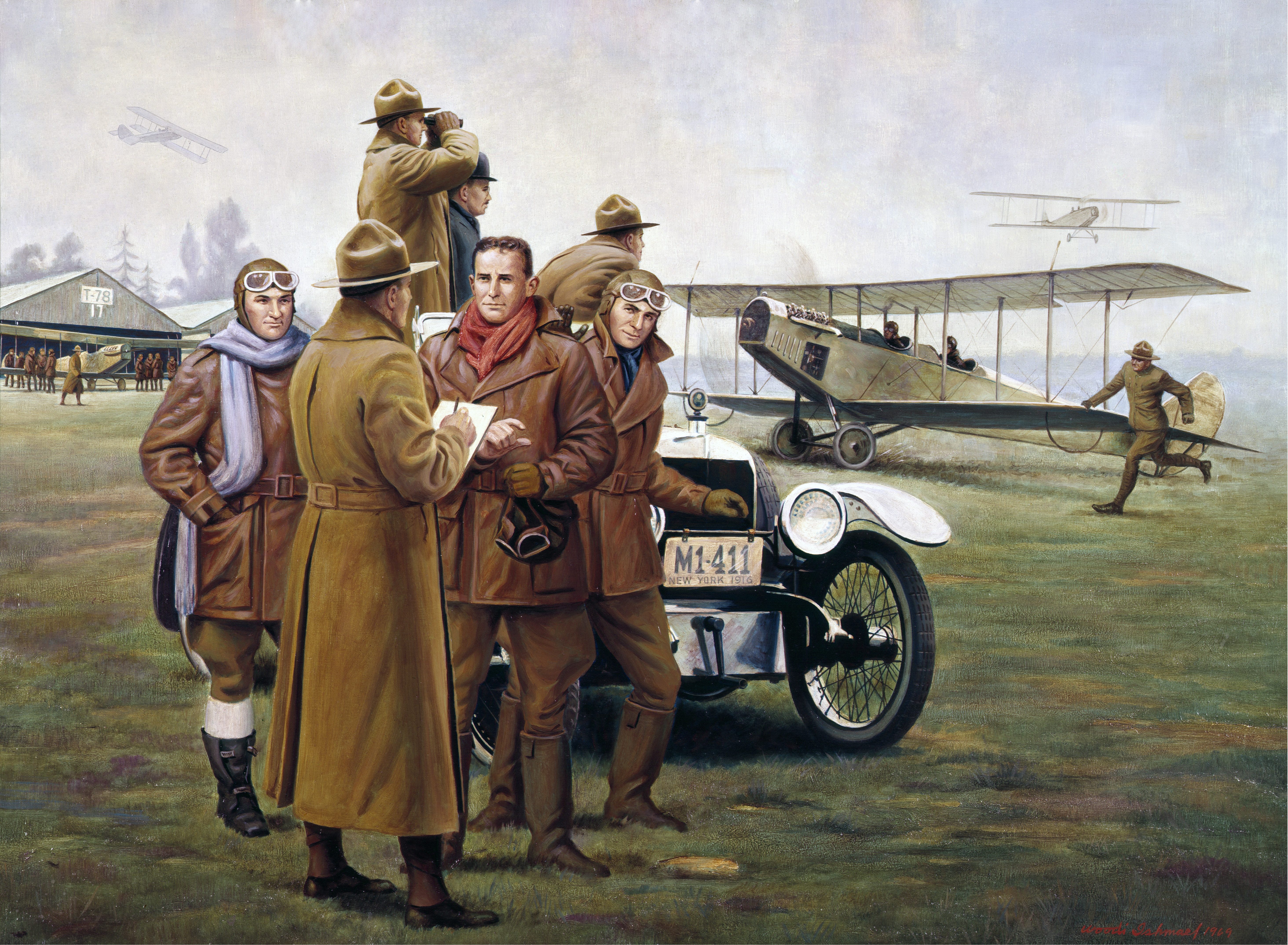 One by one, the ten JN-4 "Jennies" dropped out of cloud-laden skies at the end of a trail-blazing cross-country flight. The date was November 19, 1916 and these pioneer aviators, members of New York's 1st Aero Company, had just completed an historic roundtrip from Mineola, N.Y., to Princeton, New Jersey. The flight, hailed by the press as "the largest number ever seen on one flight in this country," was the first mass cross-country flight in U.S. military aviation. The first leg of the historic flight was launched on Saturday, November 18, with a rendezvous of twelve airplanes over Governor's Island, New York. The flight leader, an airman destined to be one of the great names in World War I aviation-Captain (later Colonel) Raynal Cawthorne Bolling, formed the aero unit in 1915. Navigating by familiar landmarks on the roads and fields, the adventuresome National Guard pilots (two aircraft piloted by civilian trainees flew only the first leg), made the return trip on Sunday, November 19, a cold and overcast day. Truly a pioneer in militia aviation, the 1st Aero Company was the first ever to be called into Federal service, in June 1916. A year later most of its members were flying combat missions in France. But the first formation cross-country flight, a pioneer accomplishment soon to be eclipsed by the great strides in aviation, nevertheless set the stage for the accomplishments of the Air National Guard in the years to come.