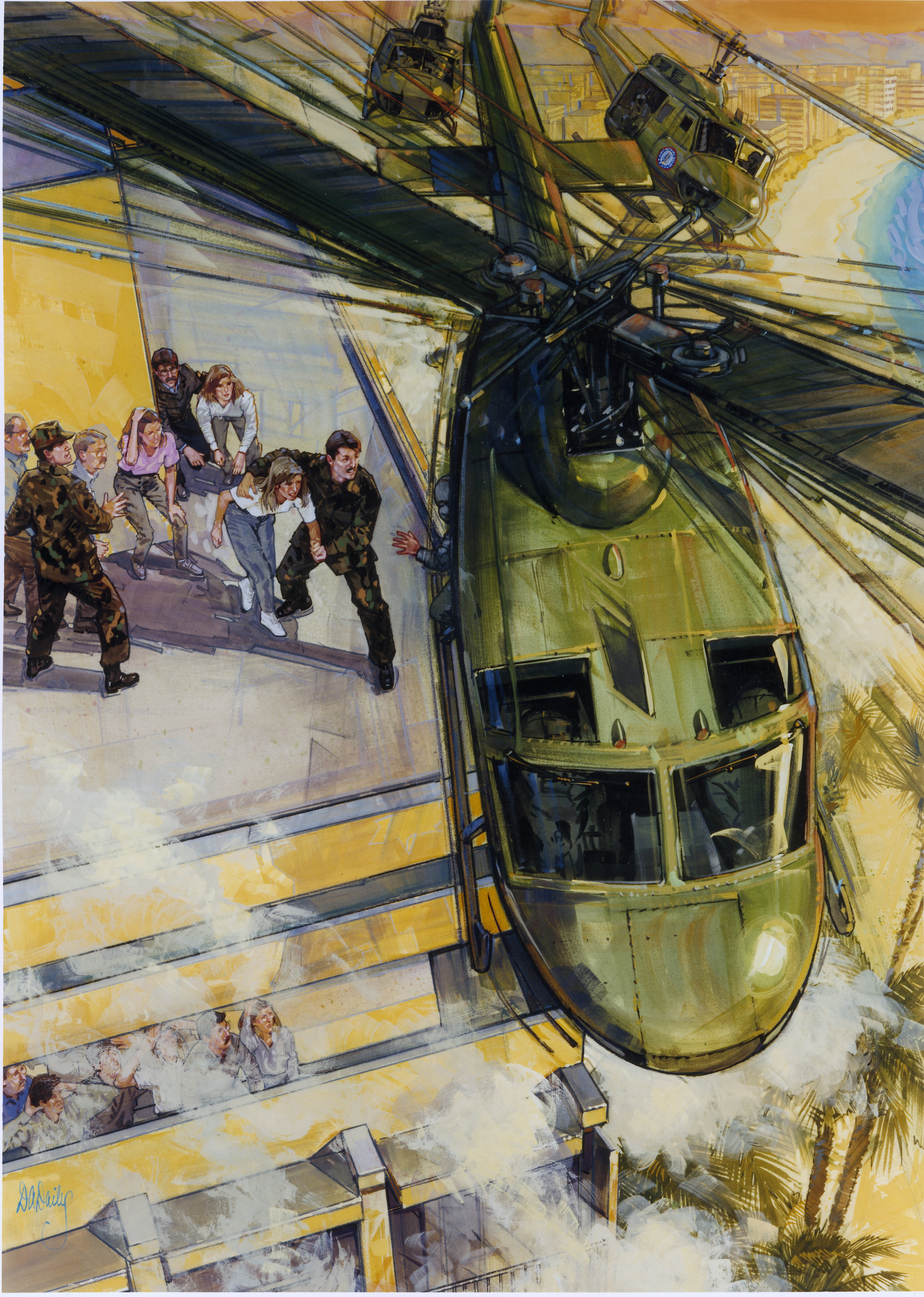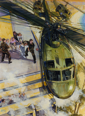 Army National Guard aviators help rescue victims of a high rise hotel fire.