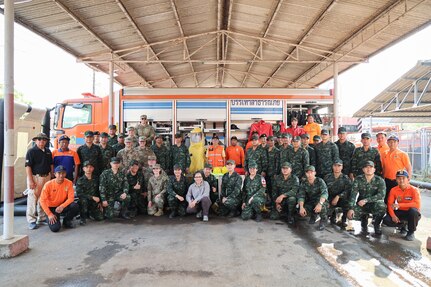 THAILAND - Washington National Guard and Royal Thai Army Soldiers pose for a photo following a CBRNE response and emergency medical operations exchange of the State Partnership Program partners in Thailand Feb. 6, 2025.