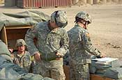 Sgt. Ed Raati of Chisholm, Minn., (left), Sgt. Danny Kraskey of Grand Rapids, Minn., Sgt. Brandon Combs of Horace, N.D., and Staff Sgt. Bradley Lahti of Robbinsdale, Minn., wait for cars to approach them to be searched Dec. 13 near Logistical Support Area Anaconda. All are Soldiers from Company C, 2nd Battalion, 136th Combined Arms Battalion, 1st Brigade Combat Team, 34th Infantry Division. Photo by Sgt. 1st Class Clinton Wood, 1/34 BCT PAO.